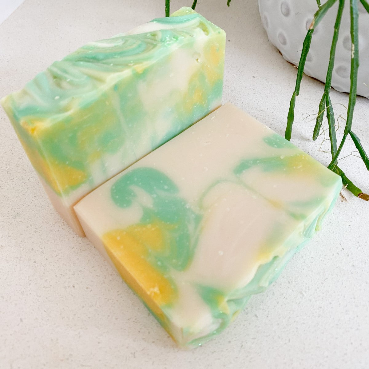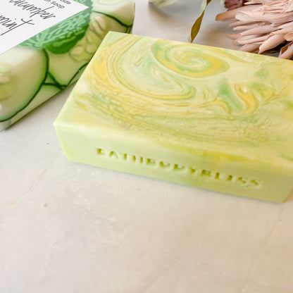 Refreshing and clean spearmint combined with zesty orange, green pear and crisp cucumber, together with hints of mimosa and ginger root give this soap a fresh and crisp aroma.